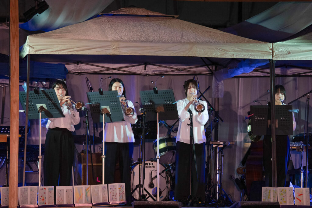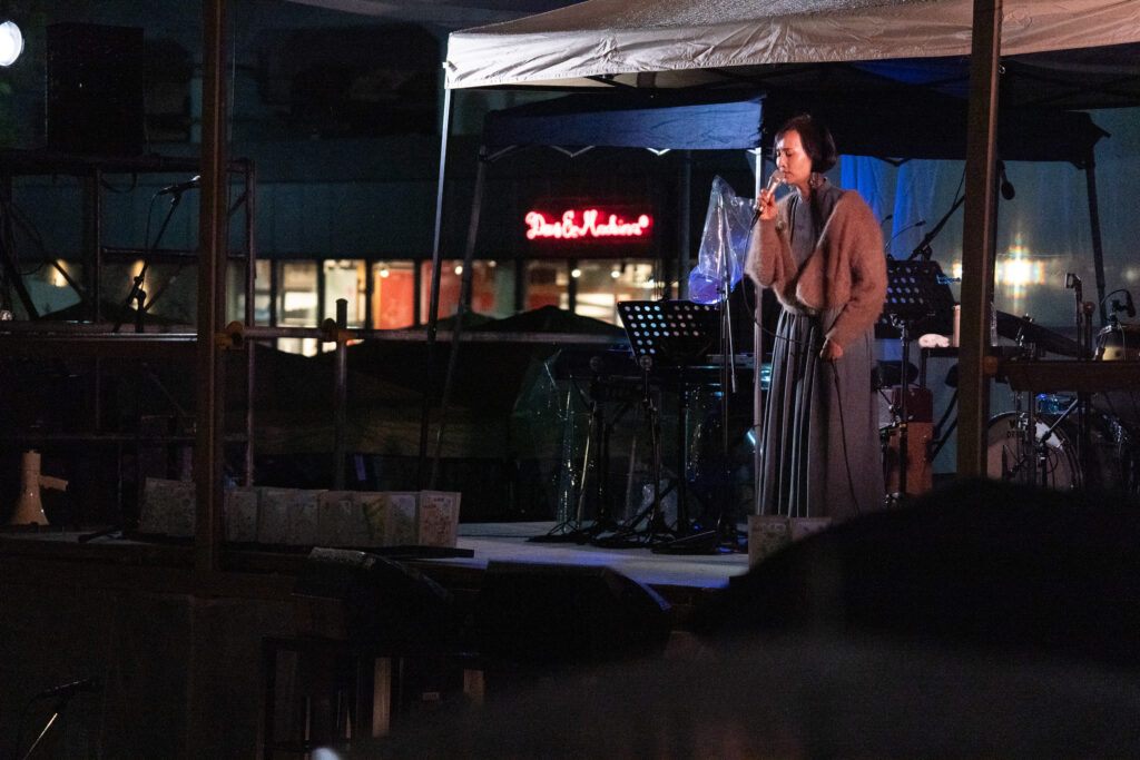 続く坂本美雨さんのステージでは、リマールの「Never Ending Story」、自身の家族についての思いを正直に綴ったオリジナル曲「かぞくのうた」、エルビス・プレスリーの「Can’t help falling in love」、銀河鉄道の夜にも登場する「星めぐりの歌」を披露。「星めぐりの歌」は、すみだ少年少女合唱団とのコラボレーションでした。夜のひんやりとした空気の中に歌声が広がっていく様子が魅力的でした。