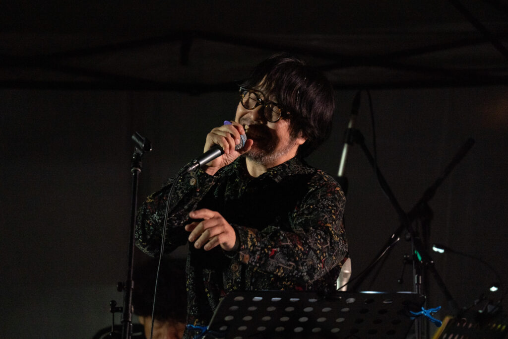曽我部恵一さんのステージでは、「ギター」、「兵士の歌」、「100年後の世界」、加川良の「こんばんは お月さん」、童謡「どんぐりころころ」など、オリジナル曲とカバー曲を披露。「ギター」は2001年のアメリカ同時多発テロを受けて作られたことや、制作した当時の思いなどが語られました。「どんぐりころころ」では、芝生エリアで小さな子どもたちが飛び跳ねながら一緒に歌っている姿が印象的でした。